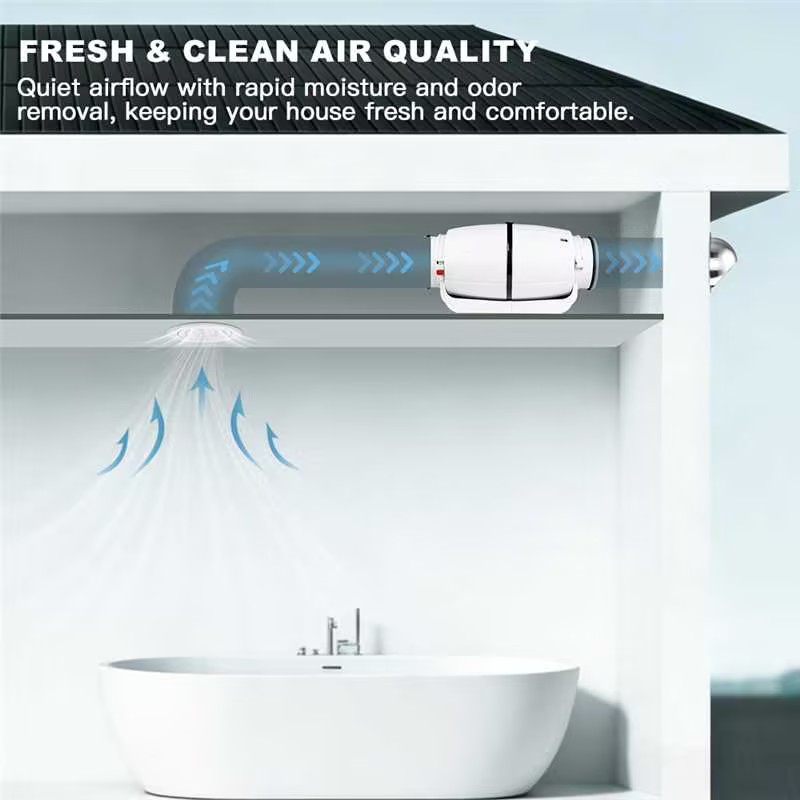- Mixed-flow technology reduces noise by up to 30dB, reducing noise by up to 60% compared to traditional fans, providing a quiet environment.